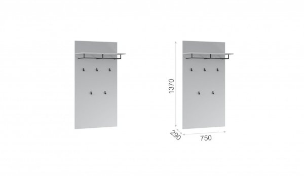 • Вешалка состоит из верхней полки, пяти крючков и металлической штанги