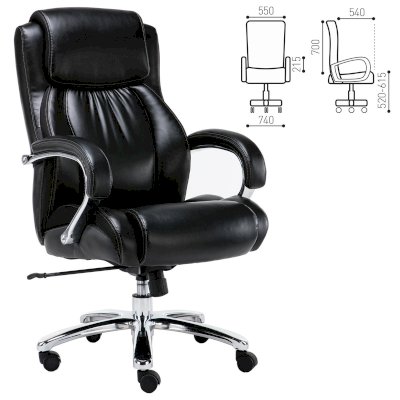 Просторные габариты, высокая спинка с выраженным подголовником, плотная набивка, подлокотники с мягкими накладками обеспечивают отличную эргономику и стильный классический дизайн.