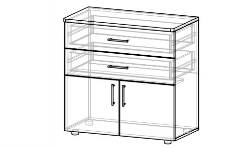 Комод из коллекции системной мебели Валенсия. Эта мебель отличается элегантным стилем и позволяет создавать классические предметы интерьера для гостиной, столовой, спальни или офиса. У модели две дверцы и два практичных ящика.