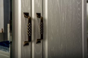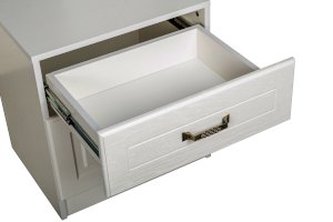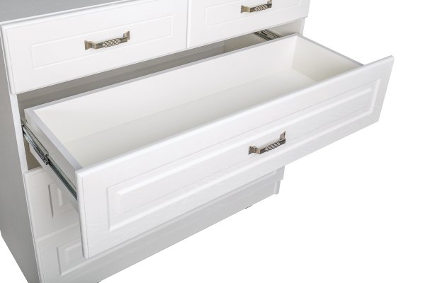 Фурнитура: Распашные фасады на четырёхшарнирных петлях, выдвижные ящики на шариковых направляющих полного выдвижения.