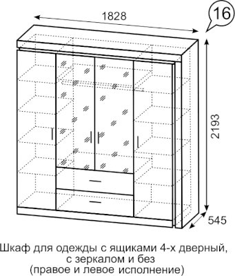 Наполнение: полки + штанга + 2 выдвижных ящика