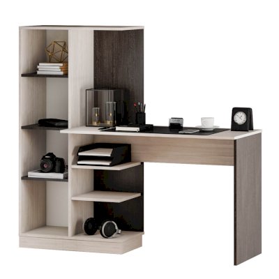 Обустроить место для работы или учебы можно с помощью компьютерного стола Бейсик. Модель сделана из ЛДСП двух цветов. Благодаря такому цветовому решению, изделие будет выигрышно смотреться в любом интерьере. Конструкция модели представляет собой вместительную столешницу, зону с открытыми полками. Небольшой пенал с распашной дверцей, в котором можно хранить необходимые для занятий вещи. Сборка универсальная.
