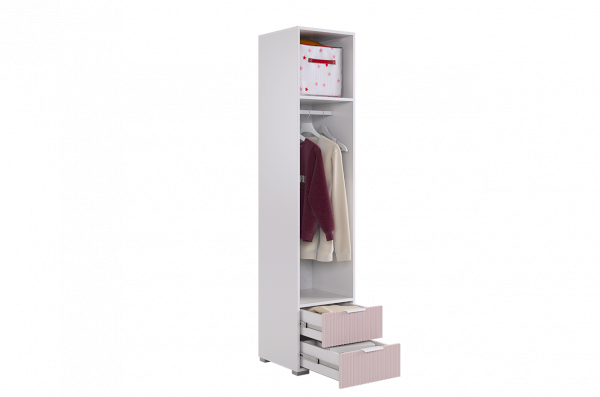 Шкаф Зефир однодверный 107.03 - стильное и функциональное решение для вашего дома. Благодаря своим компактным размерам 400х422х1900, Он легко впишется в любое помещение, предоставляя достаточно места для хранения вещей. Корпус изготовлен из качественного материала - ЛДСП белое дерево, а фасады выполнены из МДФ с эмалью цвета пудра розовая, добавляя шкафу нежность и изысканность.