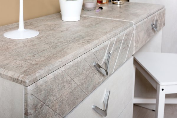 Фрезеровка на МДФ деталях и зеркалах подчеркивает форму ручек.