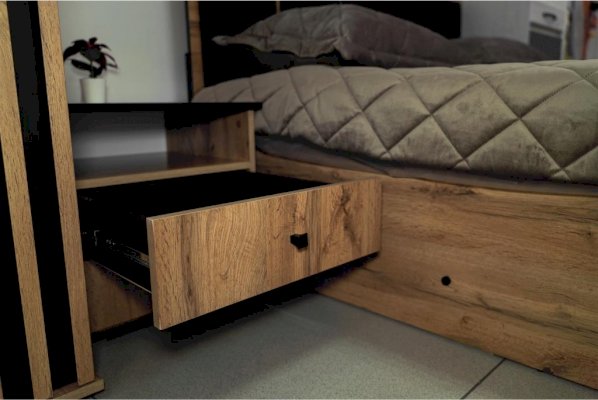 Прикроватная тумбочка содержит три отделения – открытую полку и два выдвижных ящика. Столешница имеет оптимальную высоту – такую, чтобы можно удобно и легко дотянуться и положить вещь, лежа в кровати. На тумбу можно поставить лампу, в открытую полку положить книгу, телефон, планшет – они будут одновременно и под рукой, но в то же время не будут вам мешать. В выдвижных ящиках хорошо хранить документы. Такие тумбочки обычно приобретают в паре – для нее и для него – и ставят по обе стороны двуспальной кровати. Если тумбочка женская, в выдвижные ящики размещают духи, косметику, дамские мелочи, если мужская – бумаги, ежедневники, гаджеты.