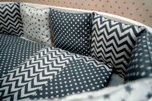 • 10 бортов-подушек со съёмными чехлами на молнии, размерами 34х30 см.