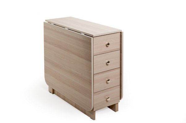 Преимуществом этого стола является наличие вместительных ящиков. В сложенном состоянии стол займёт совсем не много места и будет выполнять функцию комода или тумбы с ящиками.