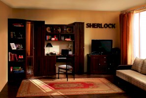 Широкий выбор модулей коллекции SHERLOCK помогает создать уютную гостиную с комфортным рабочим местом, что очень важно для маленькой квартиры. Вместительный 15 Стол письменный можно расположить между шкафами и навесить над ним 4 Шкаф навесной на любой удобной для Вас высоте. 5 Тумба МЦН – отличный вариант не только для хранения вещей, но и для размещения на ней телевизора. Шариковые направляющие тумбы обеспечивают плавность хода выдвижных ящиков. Большой выбор шкафов коллекции SHERLOCK дополнит и то, что 10 Шкаф угловой можно выбрать либо с фасадом Стандарт, либо с фасадом Зеркало. Все фасады модулей коллекции декорированы классическим переплетом из МДФ.