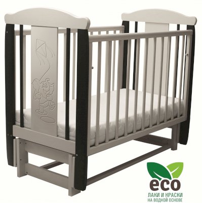 Кроватка "Соня 05" имеет механизм качания продольный маятник. Механизм качания фиксируется. Возможен вариант кровати с ящиком.