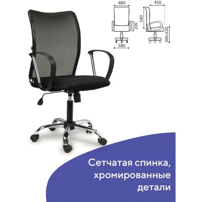Спинка кресла выполнена из прочного сетчатого акрила. Материал обладает высокой воздухопроницаемостью, легко чистится, способен подстраиваться под физиологические изгибы спины, при этом сохраняет форму и не растягивается. Залогом комфортного использования кресла также является эргономичная форма надёжного металлического каркаса. В обивке сиденья использована технологичная ткань серии TW - сложный композитный материал толщиной 5-7 мм, состоящий из нескольких слоев тканных и нетканых компонентов. Материал отлично пропускает воздух, устойчив к износу, долго сохраняет цвет, неприхотлив в уходе.