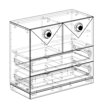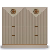 Конструкция комода включает два широких ящика, а также два закрытых отделения с дверками. Украсить интерьер можно разместив на столешнице комода декоративные предметы, вазы или любимые фотографии.