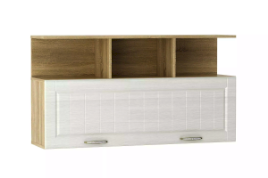Навесную полку Оливия НМ 040.50 Х можно заполнить большим количеством книг. Нижняя часть модуля оснащена глухим фасадом, который защитит внутреннее содержимое полки от пыли. Для удобства открывания на дверце предусмотрены не одна, а две ручки. Верхние открытые отсеки полки подойдут для демонстрации декоративных элементов.