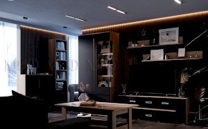 Модульная гостиная «Ким» выполнена в одном стиле и цветовой гамме со спальней «Ким», что позволяет подобрать мебель для квартиры любой площади.