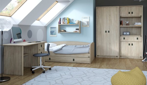 Шкаф - универсальное решение для хранения вещей. Две открытые полки подходят для книг и учебников, декоративных предметов. Декоративные накладки и профиль из МДФ по вертикальным краям закрывают острые края корпуса и придают шкафу более эффектный и надежной вид. Стилизованные металлические ручки MARINE бронзового цвета и декоративные элементы в тон – это изюминка шкафа Валенсия. Идеально компонуется со всеми модулями системы Валенсия.