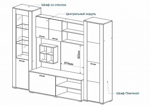 | Функционал | зона для ТВ / хранение посуды |