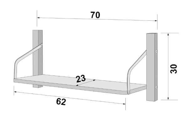 Конструкция полки навесная и крепится к стене с помощью двух надежных металлических мебельных навесов. Высокопрочная конструкция полки позволяет выдержать нагрузку на полку до 10 кг.