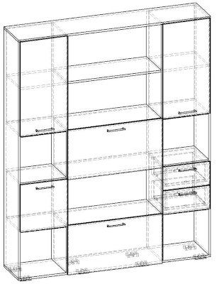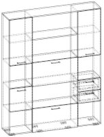 Габаритные размеры (мм) (ШхГхВ):   1600х352х2016  Корпус изготовлен из ЛДСП 16 мм с кромкой ПВХ 0,4 мм. Фасады изготовлены из ЛДСП 16 мм с кромкой ПВХ 2,0 мм. Задняя стенка (только в ячейках с фасадами) - ЛДСП 16 мм. Петли - без доводчиков. В секретерном