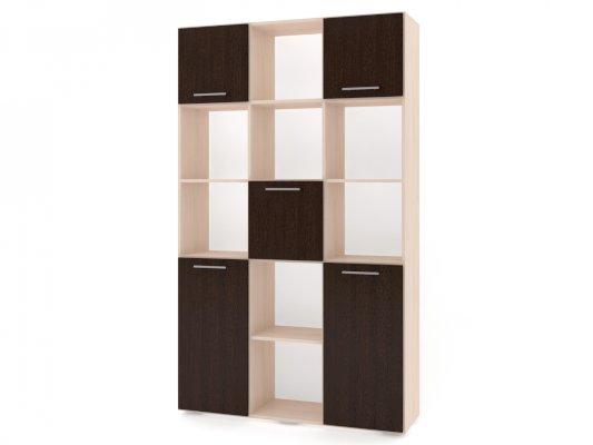Применение задней стенки из ЛДСП (в ячейках с фасадами) позволяет использовать данный стеллаж для зонирования пространства (чтобы предотвратить опрокидывание, необходимо обеспечить крепление стеллажа к стене).