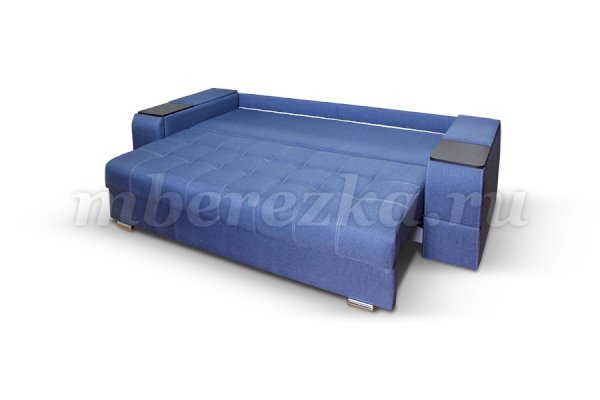 Диван со столиком значительно экономит пространство в помещении и, несомненно, делает отдых на диване комфортнее, ведь буквально под рукой есть раскладной столик в подлокотнике, на который можно поставить бокал, положить книгу или журнал, удобен при работе с ноутбуком. Другой подлокотник оборудован выдвижными полочками для хранения различных вещей. Большой ящик для белья внутри дивана, простой, и надежный механизм трансформации «тик-так» подтверждают функциональность этой модели. Блок независимых пружин, прошивка на сиденье – гарантия длительной эксплуатации дивана.