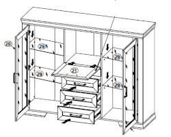 отделение в центральной части за откидной дверью, 3 выдвижных ящика на металлических роликовых направляющих