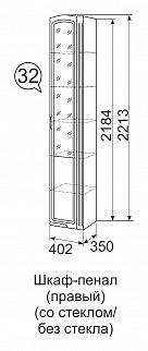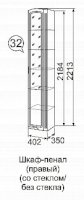 Шкаф-пенал ПРАВЫЙ СО СТЕКЛОМ №32 (верх полки стекло / низ полки ЛДСП)