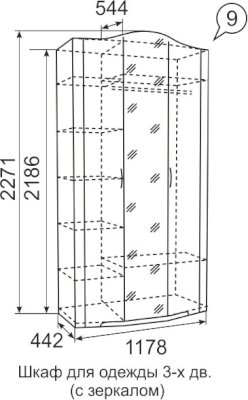 Шкаф для одежды 3-х дверный (с зеркалом) №9