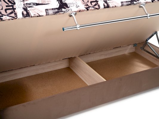 • Ящик с подъемным механизмом выполнен из ламинированной плиты (ЛДСП), что исключает повреждение белья занозами.